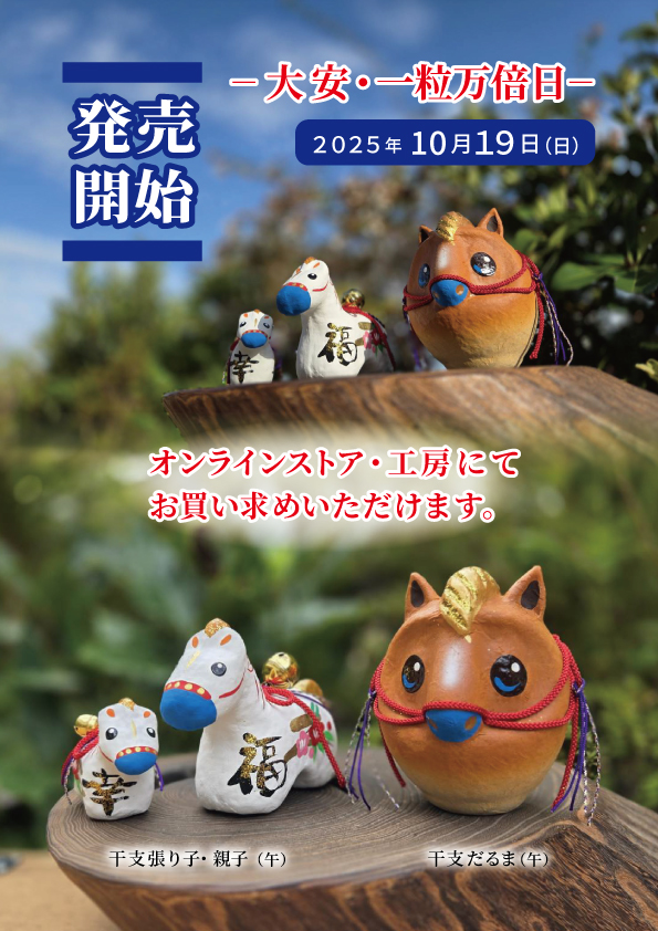本日、大安・一粒万倍日のダブル開運日にて午の干支だるま、干支張り子(親子)を発売開始いたします。