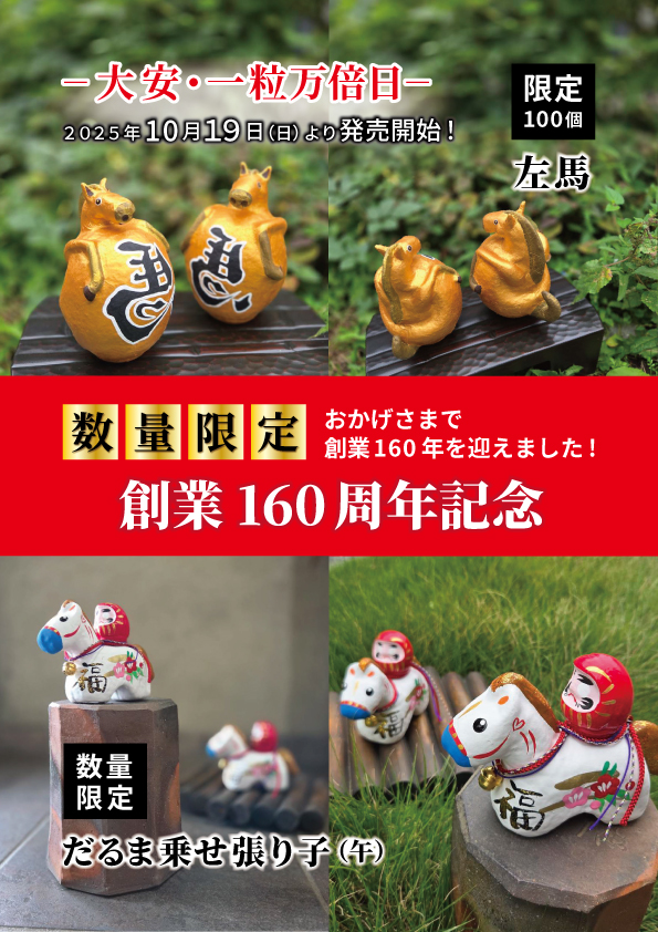 創業160周年記念にて、左馬とだるま乗せ張り子(午)を発売します!