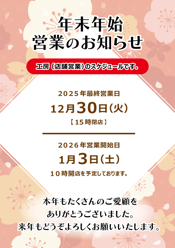 1月5日(月)~は、お正月ということもあり通常営業と異なる場合がありますので、